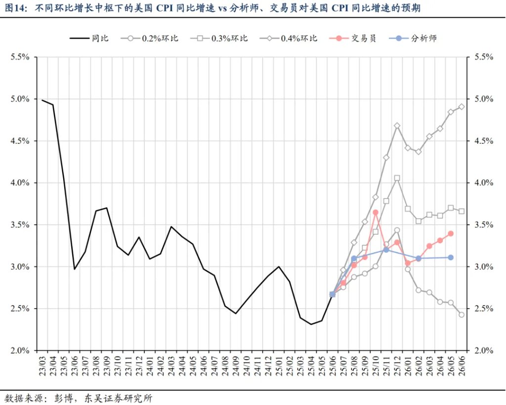 向前看,如何理解和交易美国通胀的未来影响?6月CPI公布后,由于关税对商品通胀的上行压力已开始显现,交易员预期未来一个季度美国CPI将延续0.3%的环比增长中枢运行。但考虑到上述因素,我们倾向于未来一个季度美国CPI环比增长中枢更容易不及市场预期,25Q3美国CPI同比增速仍有望保持在3%以下。