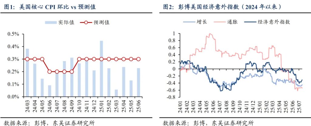 核心观点:2月特朗普关税落地以来,美国核心通胀反而连续5个月不及预期。我们认为造成这一结果的原因有:美国贸易商进口与库存周期前置,墨西哥商品进口规模增大且对美持续输入通缩,对关税敏感的核心商品在CPI中权重较小,以及关税给服务部门和美国经济总需求带来负面影响。向前看,我们倾向于未来一个季度美国CPI环比增长中枢更容易不及市场预期,但关税对通胀影响的不确定性、关税本身的不确定性以及鲍威尔对货币政策独立性的诉求意味着,当前市场预期的25H2美联储的2次降息难以实现,降息仍存在不及预期风险。